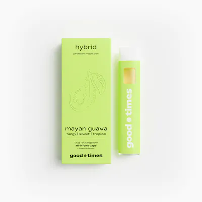 experience the tangy, sweet taste of mayan guava—rooted in the tropical flavors of central america—in a sleek 1.0g all-in-one vape. crafted with 90%+ pure cannabis oil and natural terpenes, this hybrid delivers smooth draws, balanced effects, and fast-acting relief. built with state-of-the-art hardware—including a postless ceramic heating element, proprietary airflow system, and rechargeable design—it ensures dense vapor, bold flavor, and reliable performance every time. Perfect for calm daytime focus, staying centered and present, staying steady and balanced.