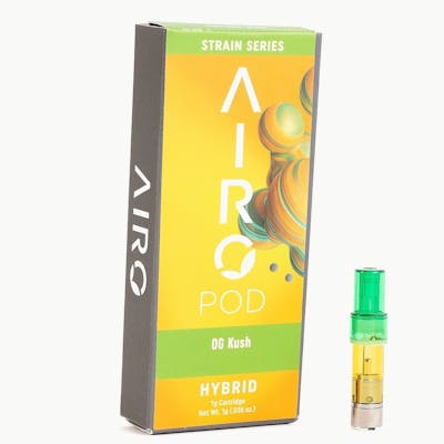 Experience the legendary OG Kush in AIRO's premium distillate pod format. This 0.5g hybrid cartridge delivers the classic strain's signature pine and lemon flavor profile with every draw. AIRO's innovative pod system pairs seamlessly with their proprietary battery for smooth, consistent vapor production. OG Kush is renowned for sparking creativity and happiness while providing an energetic lift—perfect for daytime adventures or creative projects. The distillate formulation ensures potent, flavorful hits without harshness. Whether you're a seasoned enthusiast or exploring vape pods for the first time, this strain-specific cartridge captures everything that made OG Kush a West Coast icon. Compact, discreet, and ready to use, it's ideal for on-the-go sessions when you need that perfect balance of invigoration and inspiration.