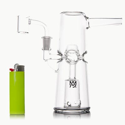 Introducing the Turret Mini Dab Rig by MJ Arsenal, a cutting-edge piece that brings a new age of dabbing to the forefront. Designed with a fusion of innovation and style, this compact dab rig showcases a revolutionary new-age fab egg function and a punted top chamber for optimal airflow. With its base connected turret perc, the Turret Mini Dab Rig delivers unparalleled smoothness and flavor in every hit. Crafted from premium borosilicate glass with precision and attention to detail, this mini dab rig is made from high-quality borosilicate glass to ensure durability and longevity. Its compact size makes it ideal for both travel and at-home use, offering a convenient and portable solution for your dabbing needs. Material: 100% Borosilicate Glass Joint: 10mm Dimensions: 5in x 2.5in x 6.5in What’s in the box: Turret Mini Dab Rig 100% Quartz Bucket Flat Top Carb Cap Mini Tool