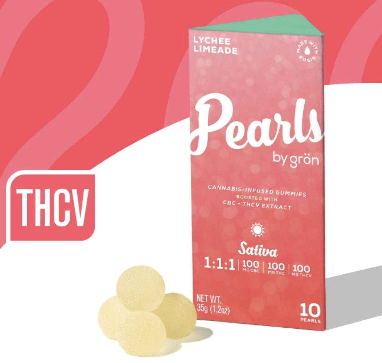 Lychee Limeade l 1:1:1 THC/THCV/CBC 10MG Gummies l Pearls by Gron