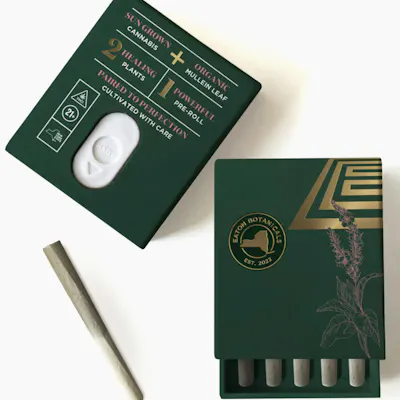 Little Pandas by Eaton Botanicals delivers five individually rolled 0.35g hybrid pre-rolls, each crafted with organically grown Outer Space Cake x Snow Panda flower blended with a dash of mullein leaf. Known for its gentle, calming properties, mullein is like a breath of fresh air for your lungs. A staple in traditional herbal medicine, it offers relief from coughing and inflammation, helping clear out the gunk. So if you're going to enjoy some THC, you may as well give your lungs a little TLC in return. These premium pre rolls are curated for quality and ready to spark whenever you are — whether you're a seasoned connoisseur or a first-time consumer.
