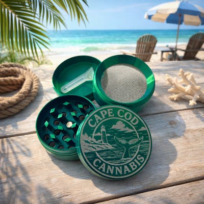 Designed for smooth sessions and coastal vibes, this limited edition 40mm grinder blends durability, performance, and unmistakable Cape Cod style. Crafted from high-quality zinc alloy, it delivers a consistent, effortless grind while holding up to daily use. The new limited edition design features our signature Cape Cod Cannabis artwork, making it as good-looking as it is functional. Inside, precision-cut teeth break flower down evenly, while the integrated mesh screen filters fine pollen into a dedicated catch chamber for easy collection. A compact 40mm size makes it perfect for at-home setups or on-the-go adventures. Whether you’re grinding up before a beach walk or a cozy night in, this grinder is built to keep things smooth, clean, and coastal. Features: - 40mm diameter, compact and travel-friendly - Durable zinc alloy construction -4-piece design with pollen catcher -Sharp, precision-cut teeth for an even grind - Magnetic lid for a secure close - Limited edition Cape Cod Cannabis design Limited quantities available. Add this coastal classic to your collection and grind with Cape Cod Cannabis style.