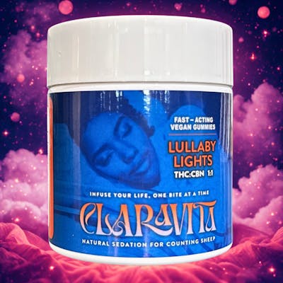 Gummies | Claravita | Lullaby Lights | Raspberry Lemonade | 1:1 THC:CBN | Live Rosin | Fast-Actin...