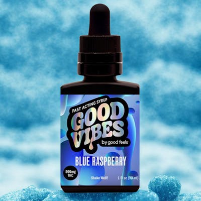 Enjoy the sweet, guilt-free delight of Good Vibes Blue Raspberry, a fast-acting cannabis syrup. With 500mg of THC in a 1 oz bottle, it provides an immediate, potent effect. Zero calories and zero sugar per serving make this syrup a perfect choice for those mindful of their intake.