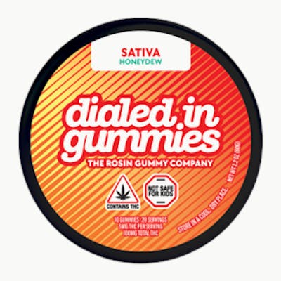 Dialed In’s Honeydew (S) from the Classics line delivers a light, refreshing honeydew melon flavor paired with premium solventless rosin for a clean, full-spectrum edible experience. Crisp and subtly sweet, this flavor offers a smooth, easy-going taste that stands out from traditional fruit gummies.