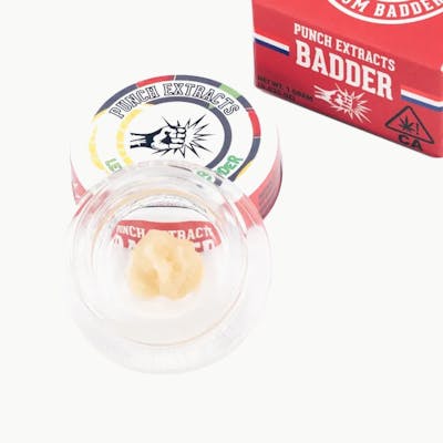 Lemon Cherry Gelato, Punch BHO Badder is a Indica strain that has a taste much like its name suggests – sour lemons plus rich cherries and berries! Th aroma is just as delightful, with a sour citrusy overtone accented by fresh berries and raspberries and just a hint of earthy pine Each dab is potent with terps for an unforgettable experience. Dab between 450 - 550*