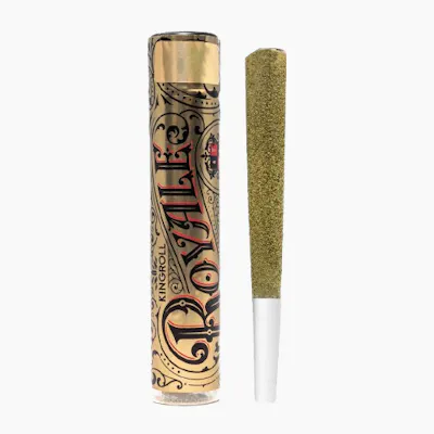 The King Roll Mimosa Royale Infused Pre-roll (1.3g) is a premium, high-potency "King Size" single designed for those who want a bright, flavorful, and uplifting experience. This is part of the Royale line, which features high-quality flower infused with distillate oil and coated in golden kief. Mimosa is a world-famous Sativa-dominant cross between Clementine and Purple Punch. It is celebrated for its incredible "brunch-style" aroma—bursting with fresh-squeezed orange juice, zesty citrus, and a hint of sweet berries.