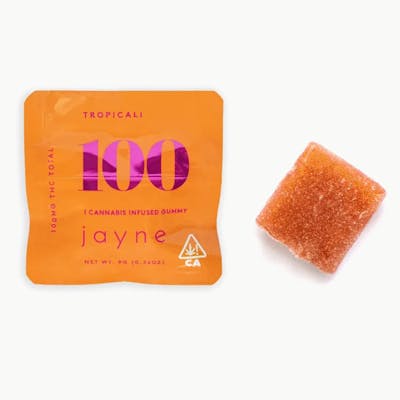 The Jayne Tropicali Gummy is a high-dose, single-serving edible designed for experienced consumers with a high tolerance. Unlike standard gummy packs that divide 100mg into ten 10mg pieces, Jayne’s "Single" packs the entire California legal limit for a package into one individual gummy.