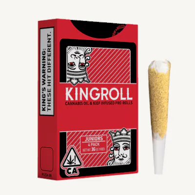 From the legendary brand Kingpen, Kingrolls are premium joints made with only whole nug flower, infused with Kingpen cannabis oil and coated in golden kief. Kingrolls are highly potent, handcrafted, flavorful pre-rolls available in a variety of complimentary flower and oil strain combinations as well as sizes for every kind of sesh.