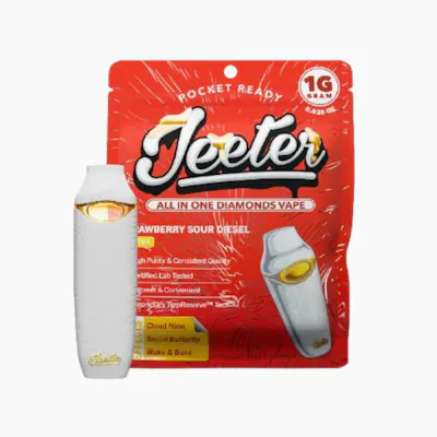 The Strawberry Sour Diesel 1g All-In-One (AIO) is a top-tier Sativa powerhouse in the Jeeter Juice lineup. This device is built specifically for their Liquid Diamonds extract—a process where pure THCa diamonds are melted into a translucent oil and blended with strain-specific botanical terpenes. This results in one of the most potent and smooth-vaping disposables available, featuring the legendary genetics of Sour Diesel and Strawberry Cough.