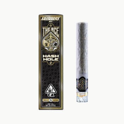 The Hash Hole - Ace features 1.5g of whole ground flower and a half gram of cold cure live rosin for a rich, potent experience. Artfully hand-rolled by our skilled team and finished with a collectible glass tip, this premium joint delivers top-tier quality and craftsmanship in every puff.