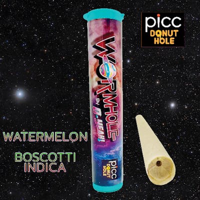 O-YEAH! | WORMHOLE | 1 Gram | Infused Pre-Roll | Distillate with Botanical Terpenes | Full flower enhanced with galactic botanical terpenes injected with a flavored concentrate Wormhole Core.These Wormholes pack a blast of flavor with a potent punch at an affordable price. | Strain: Watermelon Boscotti (Indica) | Flavor Profile: Juicy watermelon up front with sweet, candy-like notes, layered over a creamy, doughy Boscotti base. The finish is smooth, slightly floral, and accented with a hint of spice. | Dominant terpenes: β-Caryophyllene, α-Humulene, d-Limonene, α-Bisabolol, Linalool | Effects: Watermelon Boscotti delivers a deeply relaxing indica high with a soothing body melt and calm mental state. Ideal for winding down, easing tension, and enjoying a flavorful, slow-burning session. | Key Features: Crown Wick™ – Even perimeter ignition for smooth, reliable lighting; PLR Tip™ – Path of Least Resistance Tip channels airflow to eliminate start-up runs; Infused Concentrate Core™ – Composed of distillate and flavored with botanical terpenes; AIR PAK™ + S.P.A.™ Tech – Eliminates canoeing while maintaining steady, smooth airflow; Heat Curve Efficiency – Vaporizes cannabinoids and terpenes at optimal temperature for maximum effectiveness.