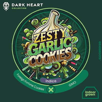# Menu Description: **Zesty Garlic Cookies (Indica)** _Limonene, b-Caryophyllene, Myrcene_ * Shortform: Zesty, funky, and deeply aromatic, this rare cut of GMO balances savory garlic with a punch of citrus for a profile that’s impossible to ignore. * Longform: This is the type of funk that feeds the soul. Zesty Garlic Cookies takes the legendary funk of GMO and dials it up with citrus brightness and a knockout indica effect. Crack a nug to unleash a rush of garlicky notes, backed by earthy mushroom and a zesty citrus twist. Limonene adds a sharp brightness to the savory skunkiness, with a bite of something rich and bold. It’s a recipe for pure relaxation- smooth, heavy, and just what you need to sink into the couch.