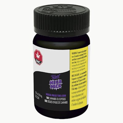 Tweed Mega Pack, featuring 100 softgels with 10mg THC & 10mg CBN per capsule.