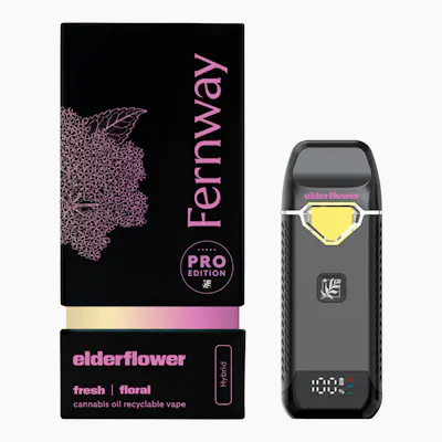 Fernway’s Elderflower Traveler PRO is a high-potency hybrid disposable vape featuring approximately 85–91% total active cannabinoids. This 2g device delivers a smooth and flavorful vapor experience with a light floral profile layered with subtle herbal, citrus, and grape-like notes. Designed for versatility, Elderflower offers a balanced hybrid effect that supports social settings, creative moments, and daytime enjoyment without overwhelming sedation.