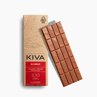 Kiva | Milk Chocolate Bar | 100mg Crafted with premium, sustainably sourced cacao, Kiva’s classic milk chocolate bar delivers a rich, smooth experience with subtle notes of brown butter and a silky, creamy finish. Infused with handcrafted, cold water cannabis extract, this bar offers a refined and balanced edible experience—perfect for true chocolate lovers. ⸻ Ingredients Milk Chocolate (Sugar, Cocoa Butter, Milk, Unsweetened Chocolate, Sunflower Lecithin, Vanilla), Cannabis Extract. ⸻ Allergy Warning Contains milk. May contain traces of nuts.