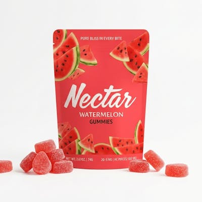 Indulge in the refreshing taste of Nectar Watermelon Gummies. Each pack contains 20 gummies infused with high-quality cannabis extract, perfect for a delicious and convenient way to enjoy the benefits of cannabis. Whether you're looking for relaxation or a mood boost, these gummies are a delightful choice.