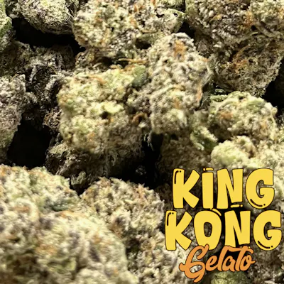 King Kong is a flavorful hybrid strain known for its bright citrus and sweet cherry aroma with a creamy, dessert-like finish. A cross of sunset sherbet and girl scout cookies with hints of lemon haze lineage, it offers a smooth, uplifting high that enhances mood and creativity while easing the body into gentle relaxation.Its colorful buds — often streaked with purple hues and covered in frosty trichomes — deliver a balanced experience that’s both energizing and soothing, perfect for daytime or evening enjoyment.