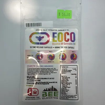 EOCO, or Essence of Cannabis Oil, is a Time Released Full Spectrum Cannabinoid Capsule. The 400mg Capsule is delivered over FOUR separate waves of effects instead of the traditional three. We've added a fourth wave on Grapeseed oil, which is absorbed down to bone and bone marrow level, allowing for deeper absorption and further medication.