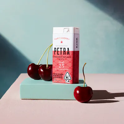 Tart Cherry Petra's robust, delectable flavor is like picking a ripe, tart cherry straight off the vine. -- Born in 2015, Petra was California’s first microdosed cannabis infused mint. It boasts the most discreet, portable, pocketable, and purse-able edibles package on the market. At 2.5MG THC per serving, Petra is perfect for the new or casual cannabis user, and the seasoned cannabis user looking for a consistent, low dose of THC throughout the day. All Petra flavors are sugar free, vegan, and contain the natural, plant-derived sweetener xylitol.