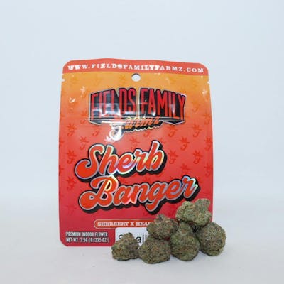 Sherb Banger is one of our newest strains that is Indica dominant with a cross of Sherbert x Headbanger. Fields Family Farmz is legacy company, with 3 generations of experience. Combining old techniques with new technology. At Fields Family Farmz we love producing and creating top notch genetics and products. We are a small boutique family owned cannabis cultivator, we produce small batches of high quality flower with the goal of bringing the consumer high potency and terpene rich cannabis at a reasonable price. Our family-run business model allows us to maintain a close-knit team of workers who are all dedicated to producing the highest quality cannabis. We believe that our family values and commitment to excellence are reflected in every plant we cultivate. We are proud of the reputation we have built over the last three decades as a reliable and trustworthy source of premium cannabis. Our customers can rest assured that when they purchase from us, they are getting the very best that the industry has to offer.