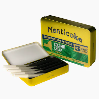 Description: (5) .7 Gram Joints infused with THC Distillate Strain Type: Indica Terpenes: B-Caryophyllene, A-Humulese, Limonene Lineage: Coconut Milk x Frosted Flakes Effects: With its highly potent THC%, users can expect this buzz to come on very fast and strong, while lasting for an extended period of time. It initially produces a brief light euphoric sensation that is quickly overlaid by a powerful relaxing effect. Aromas/Flavors: Aromas and flavors are pronouncedly gassy with notes of milk, making the whole flavor a much creamier experience.
