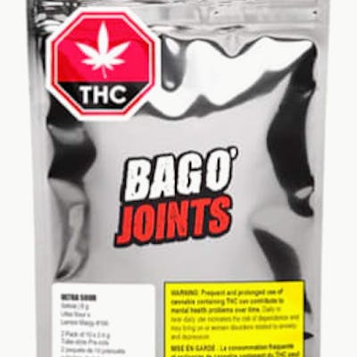 Ultra Sour Bag o' Joints delivers 20 tube-style, 0.4g pre-rolls across two packs of 10, rolled with 100% organic hemp paper for a smooth, pure taste. This sativa-leaning cultivar boasts bold aromas of tart lemon, diesel, and herbal notes, with terpinolene and limonene in the terpene profile. Perfect for those who crave vibrant flavour and a smooth pre-roll experience.