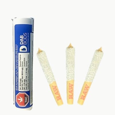 Elevate your experience with Dab Bods Sour Blueberry 50’s+ Triple Infused Pre-Rolls. Featuring a cultivar that delights the senses with its sweet-and-sour blueberry flavour. Each puff bursts with fruity aromas, complemented by zesty citrus notes and the luscious essence of ripe berries. Infused with premium resin, distillate, and botanical terpenes then generously coated with diamonds, these pre-rolls deliver a remarkable potency of 50+ THC. Packaged in a convenient three-pack of half-gram pre-rolls. Dive into a vibrant world of flavour and aroma with Dab Bods Sour Blueberry.