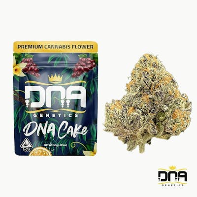 Gelato Sorbet x Lava Cake DNA Cake is an indica dominant hybrid that has an extravagant terpene profile, she is sweet, creamy, gassy with vanilla frosting taste and scent. Every day it’s your birthday with DNA Cake . . . . it’s time to celebrate and indulge! Taste: Sweet, Cake, Gassy Terpenes: Limonene, Pinene, Myrcene, Linalool, cis-Ocimene Uses: Depression, Anxiety, Pain, Stress, Insomnia Effects: Relaxed, Sleepy, Euphoric, Strong