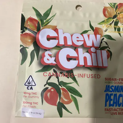 CHEW AND CHILL FAST ACTING 100MG JASMINE PEACH LIUVE RESIN HYBRID 10MG PER GUMMY