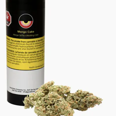 Bred in-house, our Mango Cake is an exotic dessert cross of GOOD BUDS' juicy Mango Taffie cultivar with sweet and creamy Wedding Cake. It leads with classic Mango Taffie smells of ripe mango sweetness with a gassy afterburn, followed by sweet vanilla undertones and a creamy mouthfeel on the exhale. Grown in small batches in living organic soils, each batch of Mango Cake is hand-harvested, hang-dried, and slow cured following artisanal legacy methods. It's then hand-packed into recyclable EcoLite tubes, which use 50% less plastic than average tubes. Terpenes include terpinolene, ocimene, and myrcene.