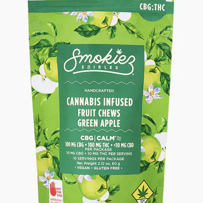 Smokiez Green Apple 100mg CBG : 100mg THC 1:1 Fruit Chews - ME