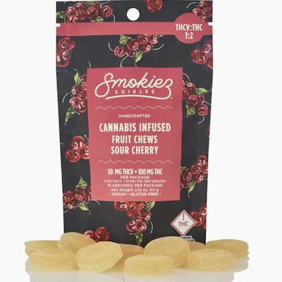 Sour Cherry 100mg THC : 50mg THC-V Fruit Chews - CA