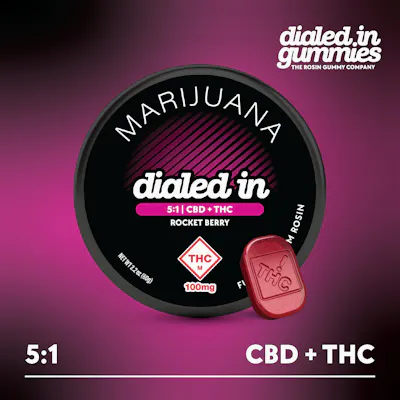 Dialed In: Rosin Gummies | Rocket Berry | 5:1 | 500mg CBD : 100mg THC | 10pk