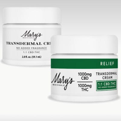Mary's Medicinals: Topical | Transdermal Cream | Relief 1:1 | 1000mg THC : 1000mg CBD