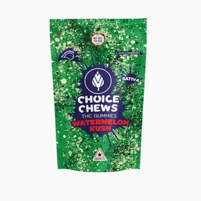 Chill out with Choice Chew's Sativa enhanced Sour Watermelon Kush gummies. A juicy punch of tangy, a blast of sweet, add in the soft touch of sativa and you have the perfect marriage of flavor and feels. Made from scratch and infused with premium high-potency distillate.