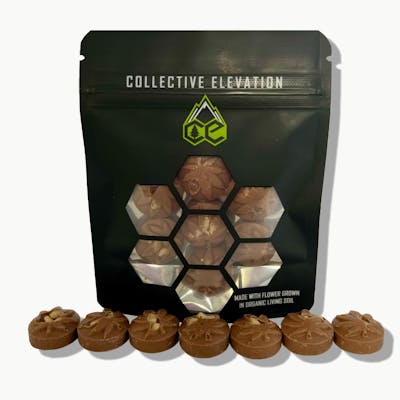 Satisfy your sweet tooth and unwind with our Indica Toffee Sea Salt Chocolate Bites. Crafted in small batches in our on-site kitchen, these premium bites are made with full-spectrum cannabis extracts from living soil, sun-grown flower, ensuring a high-quality, well-rounded experience. These chocolate bites offer a soothing, deeply relaxing effect, ideal for evening use or winding down after a long day. The crunchy toffee bits paired with a touch of sea salt and rich chocolate create a perfect balance of sweet and savory flavors that will delight your taste buds. Handcrafted with high-quality ingredients, these chocolate bites provide a consistent dosage, ensuring a reliable and enjoyable experience every time. Whether you're looking to relax, de-stress, or indulge in a moment of self-care, these Indica Toffee Sea Salt Chocolate Bites offer a delicious, effective way to enjoy the benefits of cannabis. 100mg Indica THC Full Spectrum Chocolate Bites.