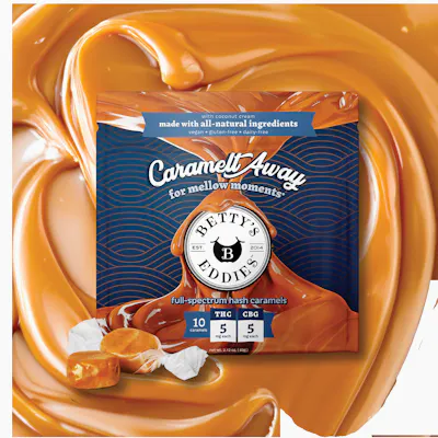 We’re excited to introduce Betty’s Eddies Caramelt Away—a rich, full-spectrum hash & CBG-infused caramel chew designed for sweet, melty moments of mellow. What You Need to Know: 5mg full-spectrum hash + 5mg CBG per chew All-Natural & Premium Ingredients – Like all Betty’s Eddies chews, Caramelt Away is made with real ingredients and coconut cream for a smooth, melt-in-your-mouth experience. Vegan, Gluten-Free, Dairy-Free – Perfect for customers with dietary preferences. Effect: CBG + full-spectrum cannabis for a soothing, cozy, and relaxing experience. Flavor: Classic caramel – rich, gooey, and indulgent!