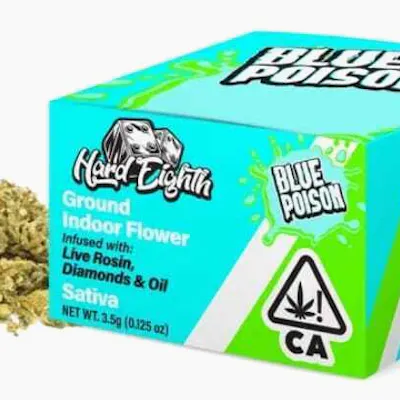 Blue Poison captivates with its striking appearance, featuring dense buds adorned with crystalline trichomes that sparkle like diamonds. The moment you open the package, an intoxicating aroma of sweet blueberry fills the air, promising an extraordinary experience ahead. Each perfectly cured nug delivers a smooth, berry-forward flavor profile that makes every session memorable. This distinguished strain offers remarkably balanced effects that energize the mind while maintaining crystal-clear focus. The uplifting properties te creativity and motivation, making Blue Poison an ideal companion for daytime activities, artistic endeavors, or productive sessions. Hard Eighth is revolutionizing the cannabis scene with their exceptional infused flower products, combining premium flower with Live Rosin, Diamonds, and Oil to create a luxurious smoking experience.