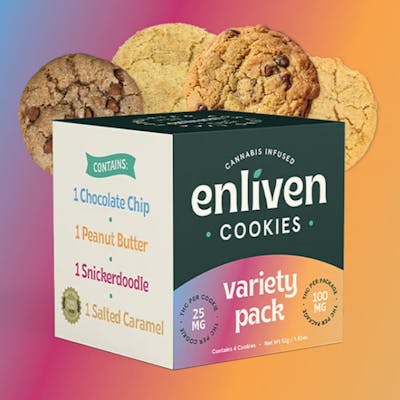 Each pack is labeled with ONE sku for easy POS integration and contains a 25mg Chocolate Chip, Peanut Butter, Snickerdoodle, and Salted Caramel Cookie.