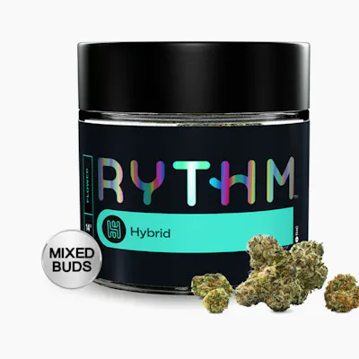 RYTHM Mixed Buds deliver a high-quality flower experience from the #1 Flower Brand in the World¹. Featuring iconic, high-potency strains, this format combines both Premium Flower and Mini Buds in a single jar, offering the trusted, reliable quality consumers expect from RYTHM. Each jar includes a mixture of bud sizes and trimming solutions, while still preserving lush aromas and rich flavors true to each strain. Available exclusively in larger pack sizes, RYTHM Mixed Buds are made for more sessions with fewer re-ups. Bananaconda [orig: Snake Cake x Dual OG] is a hybrid that blends ripe banana and creamy sweetness on the inhale, finishing with herbal depth.