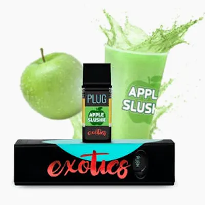 How ya like them apples...slushie!! PLUGPLAY™ introduces their newest addition to their Hybrid PLUG™ EXOTICS family: Apple Slushie. Its crisp and refreshing essence is the perfect pick-me-up no matter what time of the day. [cross] [/cross] [flavor]Crisp Apple[/flavor] [aroma]Refreshing[/aroma] [experience]Hybrid; Uplifting and perfect pick-me-up any time of day[/experience]