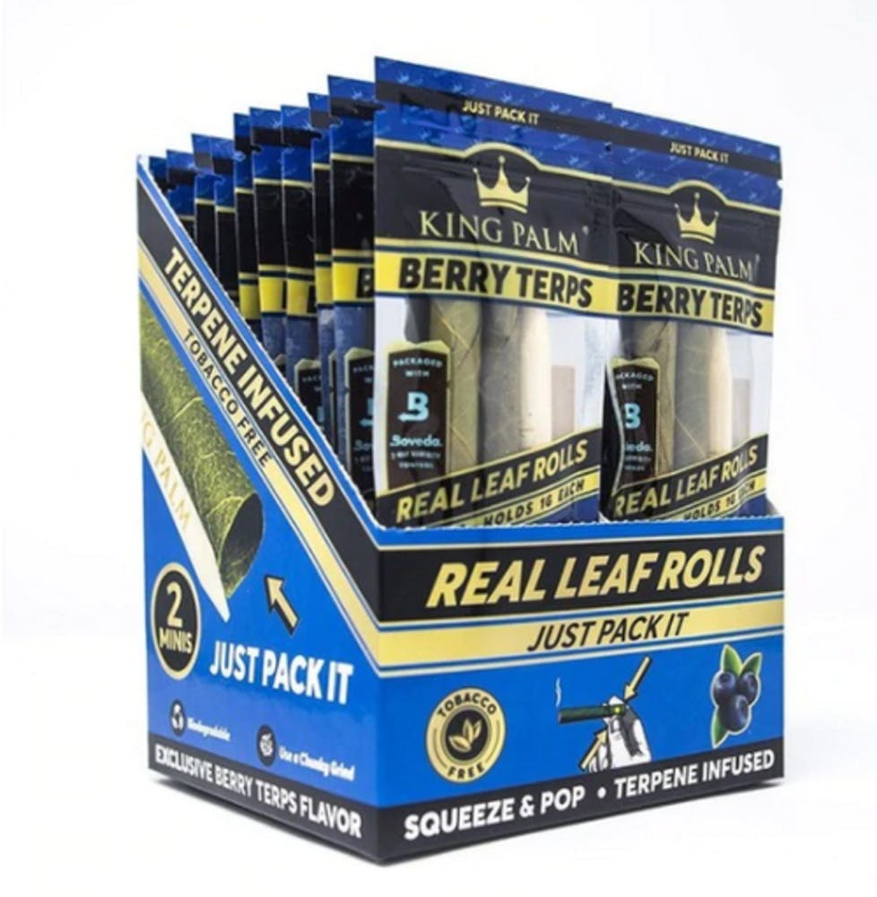 -- The King Palm Berry Terps is the ultimate pre-rolled mini cigar wrap. Each wrap is infused with terpenes which will only enhance the smoking experience. Each hit will give you the magical tastes of all berries mixed into one.