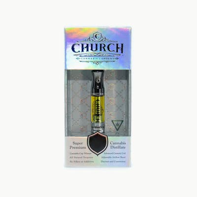BetaCaryophyllene: 1.26mg/g | BetaMyrcene: 5.07mg/g | CBD: 18mg/g | Limonene: 10.07mg/g | Terpinolene: 1.13mg/g | THC: 919.5mg/g | THC9: 904.1mg/g | THCA: 17.6mg/g -- All Church vaping hardware is COA certified as being heavy metal-free with No detection of Arsenic, Cadmium, Lead or Mercury. Control your vaping experience through our Adjustable Air Flow Bezel located at the base of the reservoir housing. Enjoy the delivery of each draw by way of our proprietary Advanced Heating Elements. Pair your Church cartridge up with your Church battery to maximize performance. Church Cannabis’ product line includes super premium oil derived from the most sought after strains.