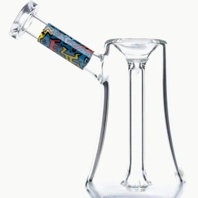Inspired by the boundless creativity of acclaimed artist, Keith Haring, the K.Haring Bubbler bridges the gap between street art and smoking culture. Forged from thick borosilicate glass, the Bubbler showcases a fixed bowl and downstem. A showerhead percolator with eight slits delivers advanced water filtration for cool, purified smoke. This bell-shaped bubbler is comfortable in-hand and flares at the bottom for additional stability. Hand-applied designs on the neck and base serve as groundwork for Haring’s strong, fluid lines and emotive power. This timeless masterpiece is finished with the artist’s signature. The Bubbler is packaged in a durable box that’s enriched with Haring’s signature and dynamic imagery. Compressed foam inserts and thick outer walls provide safe and secure storage.