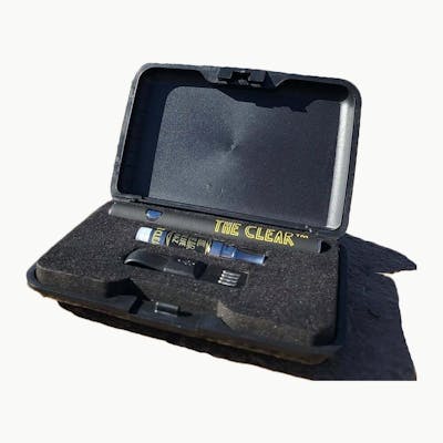 The Clear Dual Variable Voltage Battery is a 510 thread battery that is compatible with all The Clear cartridges. This button battery is black with The Clear logo.