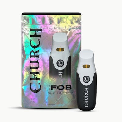 BetaCaryophyllene: 0.95mg/g | BetaMyrcene: 3.32mg/g | CBN: 1.53% | Limonene: 12.96mg/g | THC: 864.3mg/g | THC9: 86.43% -- Sky OG is a classic strain known for its robust kush aroma, featuring a spicy herbal scent with hints of jet fuel. This indica strain offers deep relaxation, complemented by flavors that blend earthy undertones with a touch of pine and a subtle sweetness. Users also report strong body effects, including mild tingling and numbness. The Church Fob packs a punch with its advanced ceramic heating element and preset temperature control backed by 410mAh of power. It's rechargeable, requiring no additional components.