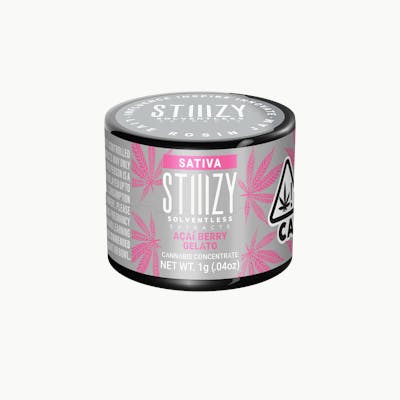 STIIIZY Acai Berry Gelato Rosin delivers premium solventless extract craftsmanship in a convenient 1g concentrate. This high-quality rosin showcases the exotic Acai Berry Gelato profile, blending sweet berry notes with creamy, dessert-like undertones for a truly indulgent dabbing experience. Crafted using heat and pressure extraction methods, this rosin preserves the plant's natural terpenes and cannabinoids without chemical solvents, offering a clean, flavorful, and potent concentrate. Expect rich fruity and sweet aromas that translate beautifully into smooth, full-bodied vapor. Perfect for concentrate enthusiasts seeking purity and flavor, STIIIZY's Acai Berry Gelato Rosin provides an elevated session with every dab. Whether you're unwinding after a long day or enhancing creative moments, this premium extract delivers the quality and consistency STIIIZY is known for. Experience solventless excellence with this exceptional 1g rosin.