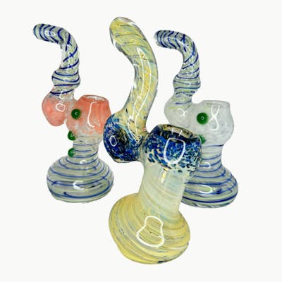 6 1/2" tall glass bubbler. Available in assorted colors and designs.