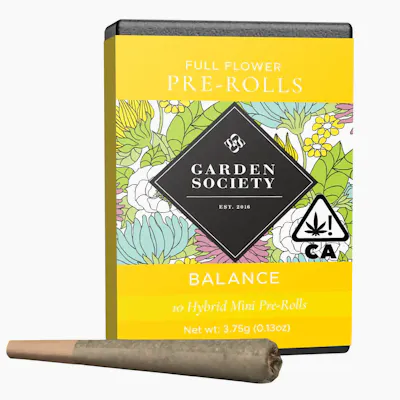Garden Society's Balance Pre-Rolls are intentionally crafted with whole flower, sustainably sourced cannabis from premier farms in Sonoma and Mendocino counties. Artfully packed with a folded tip for an even burn. Our hybrid strains offer a balanced, anytime effect—ideal for staying grounded while keeping your spirits high.
